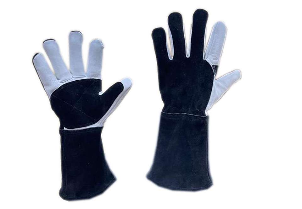 ถุงมือเชื่อมกันไฟถุงมือสำหรับงานเชื่อมบาร์บีคิวทนความร้อนเตาอบเครื่องเชื่อมโลหะ MIG/Tig สำหรับงานเชื่อมที่ทำจากหนัง