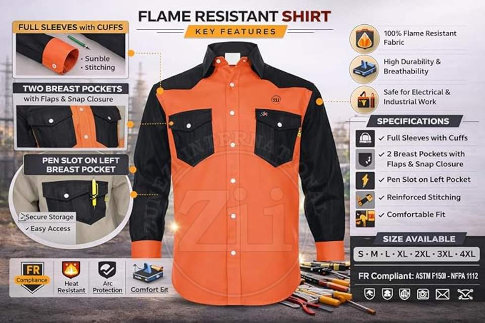 เสื้อทนไฟ CAT2 ป้องกันการลุกลาม 8.2cal/cm2 ATPV NFPA 2112 ระดับสีแดงดำ น้ำหนักเบา ผ้าฝ้าย สำหรับงานเชื่อม ZUNEZI ZI-8010