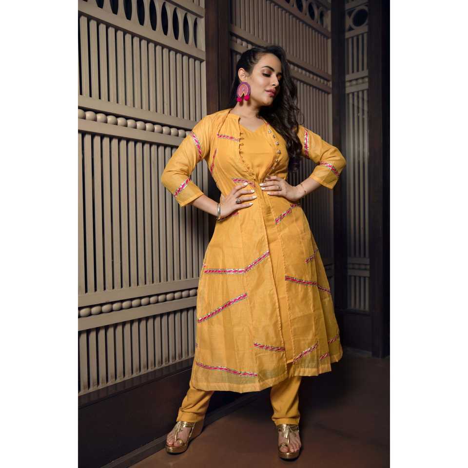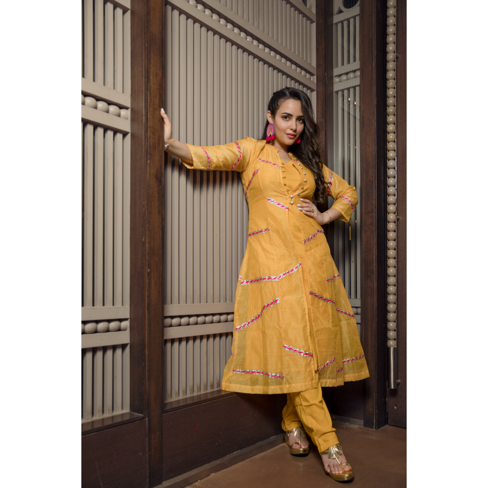 ชุดสูทผ้าชีฟองสีเหลืองไฟสำหรับผู้หญิง ไซส์ XS แขนสามส่วน ระบายอากาศได้ดี