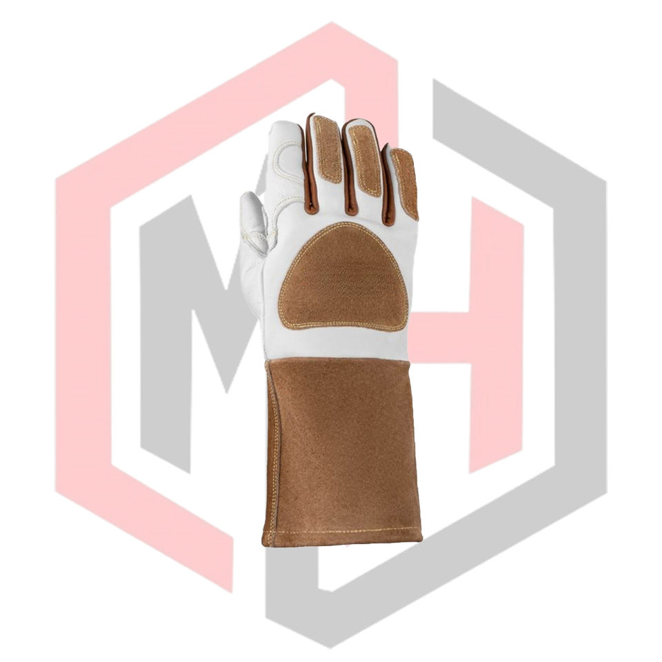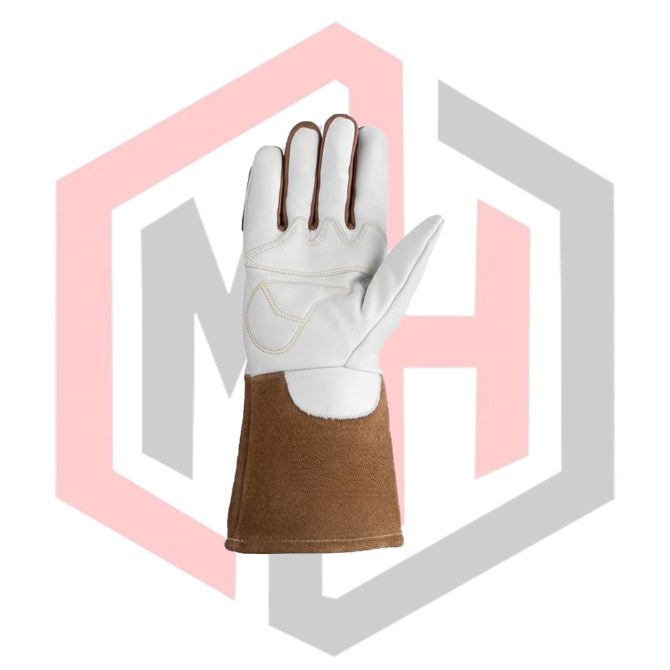 ถุงมือเชื่อมหนังแท้ทนไฟ แบบเย็บติดกัน ความยาว 14 นิ้ว ปราศจากซิลิโคนและแป้ง สำหรับงานเชื่อม MIG/TIG/Stick