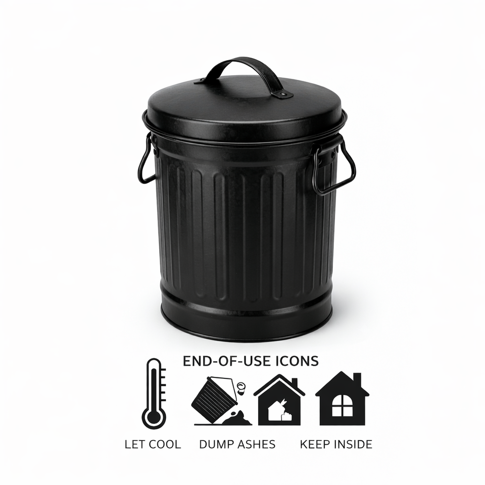 ถังขยะเหล็กชุบสังกะสีขนาดเล็กพร้อมฝาปิด สำหรับใส่ขี้เถ้าจากเตาผิง เตาไฟ และเตาเผาไม้