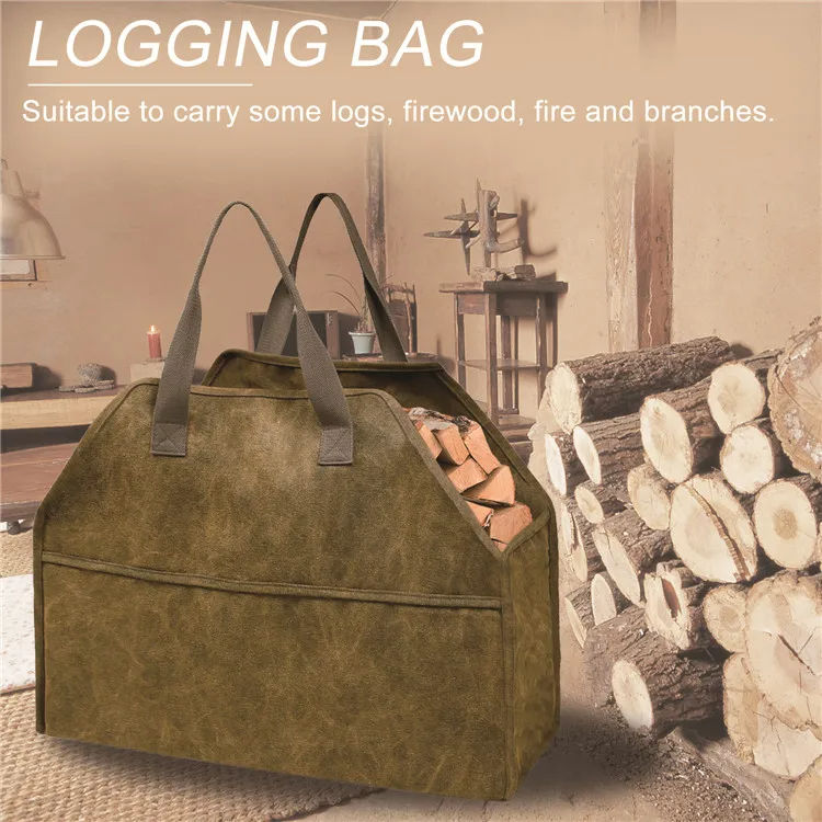 กระเป๋าเก็บฟืนฟืนผ้าใบพร้อมสายรัดสำหรับตั้งแคมป์ในสวน