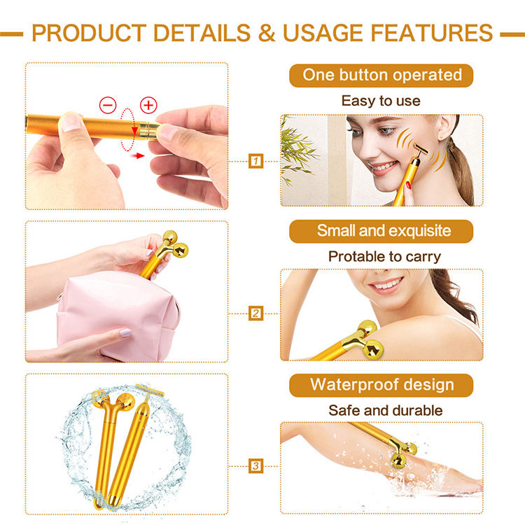 Product name:Roller Vibration Massager Energy 24K Gold T Beauty Bar