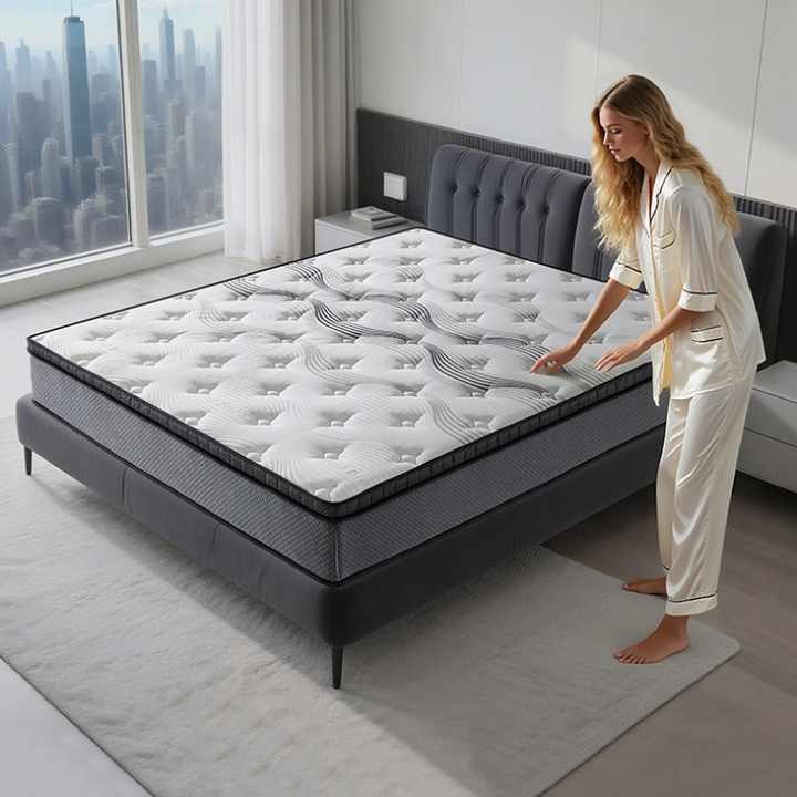 ที่นอนสปริงขนาดคิงไซส์ผ้าถักเนื้อนุ่มแบบไฮบริดมีกระเป๋าหรูหราสำหรับโรงแรม