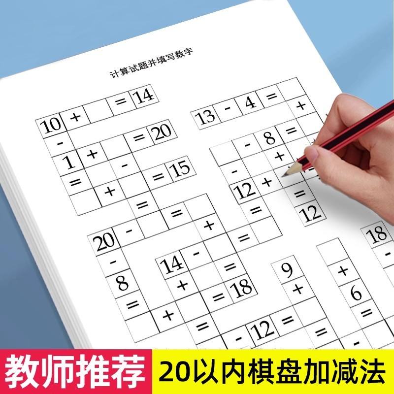 สมุดงานคณิตศาสตร์ชั้นประถมศึกษาปีที่ 1 การบวกและการลบ 170x240 มม. 10 แผ่น แบบฝึกหัดคำนวณสองด้านสำหรับนักเรียนชั้นประถมศึกษา