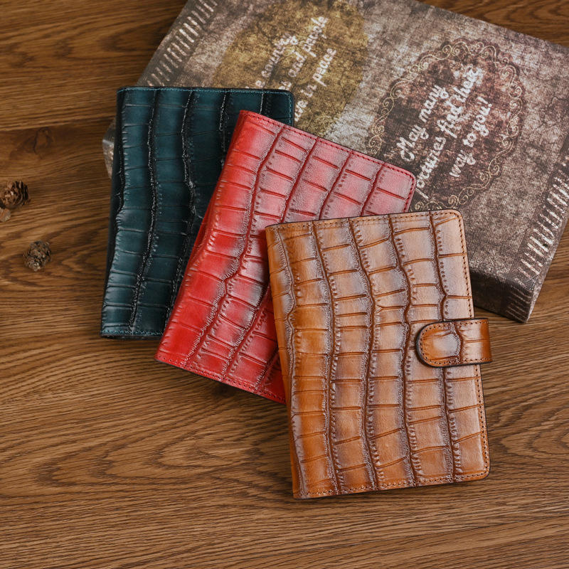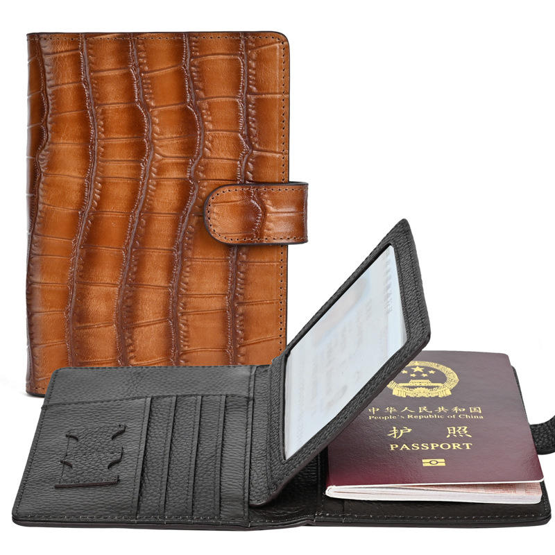 กระเป๋าใส่หนังสือเดินทางหนังฟอกหนังวัวชั้นแรกลายจระเข้สีสำหรับใส่บัตรบัตรประชาชน