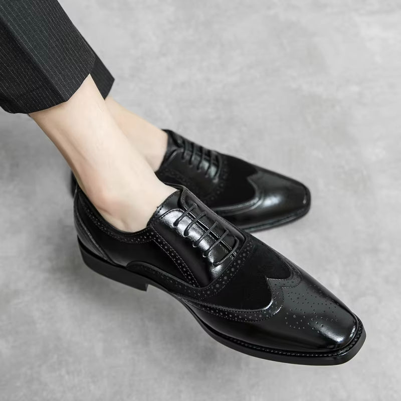 รองเท้าผู้ชายทรงอ็อกซ์ฟอร์ดแบบทางการสไตล์อังกฤษ พื้นหนา หัวกลม วัสดุตาข่ายเคลือบเงาคุณภาพสูง สำหรับฤดูใบไม้ร่วง เหมาะสำหรับใส่ทำงานหรือลำลอง