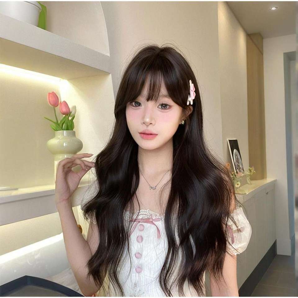 ผมยาว 60 ซม. ลอนคลื่น สีน้ำตาลเข้ม พร้อมหน้าม้า
