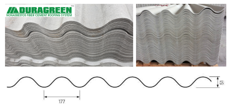 แผ่นหลังคาลูกฟูกไฟเบอร์ซีเมนต์เสริมแรงด้วย PVA คุณภาพสูง ทนทาน ยี่ห้อ Duragreen หนา 6 มม./6.3 มม. สำหรับงานอุตสาหกรรม