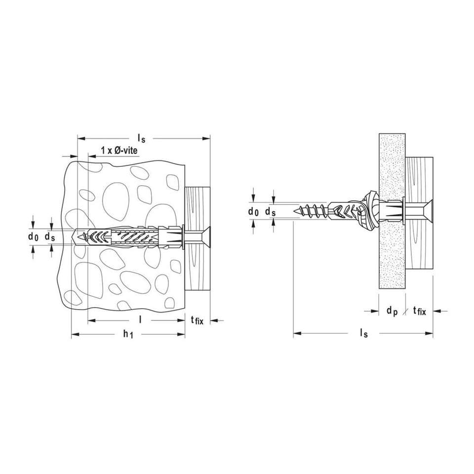 ฟิชเชอร์ UX-S ไนลอน dowels กับ chipboard สกรู (50ชิ้น)