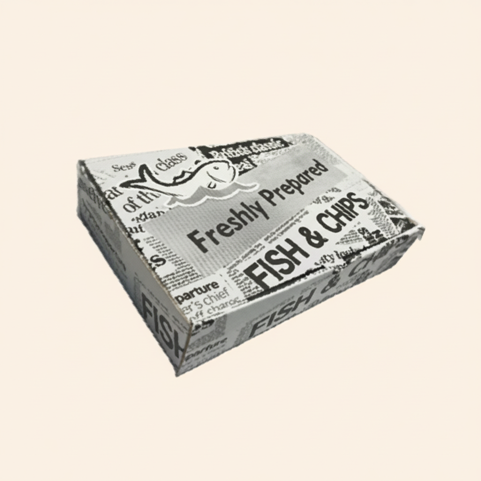 Fish And Chips Takeaway Packaging Box Food Grade Paper High Quality Durable Custom Printed Restaurant Fast Food Box