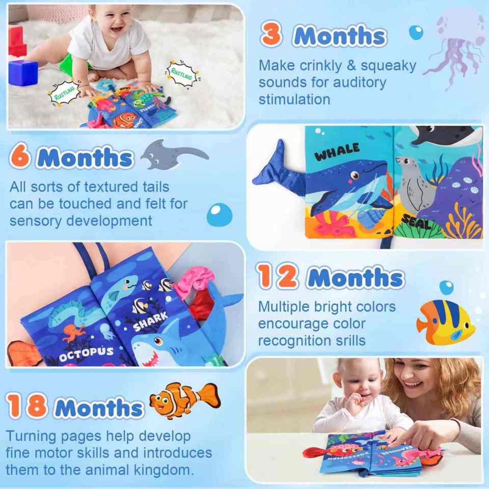 หนังสือผ้าสำหรับเด็กเล็ก หนังสือสัมผัสและสัมผัสได้ หนังสือผ้ามีเสียงกรอบแกรบ หนังสือเสริมพัฒนาการและการเรียนรู้ หนังสือสัมผัสเนื้อนุ่ม