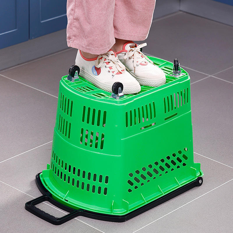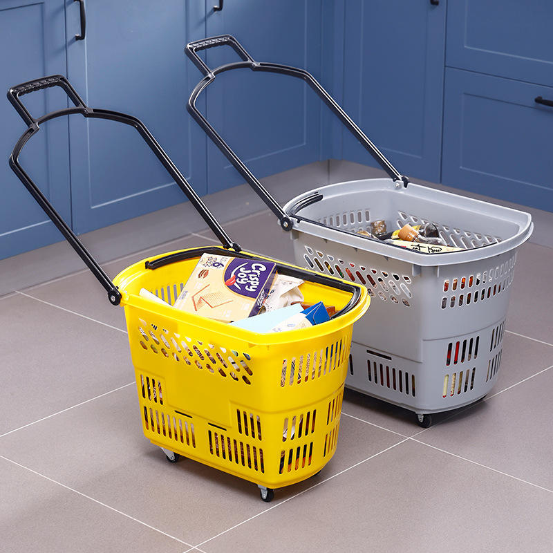 ตะกร้าช้อปปิ้งพลาสติกแบบมีหูหิ้ว พกพาสะดวก ความจุมาตรฐาน หลายสี สำหรับเก็บของชำ