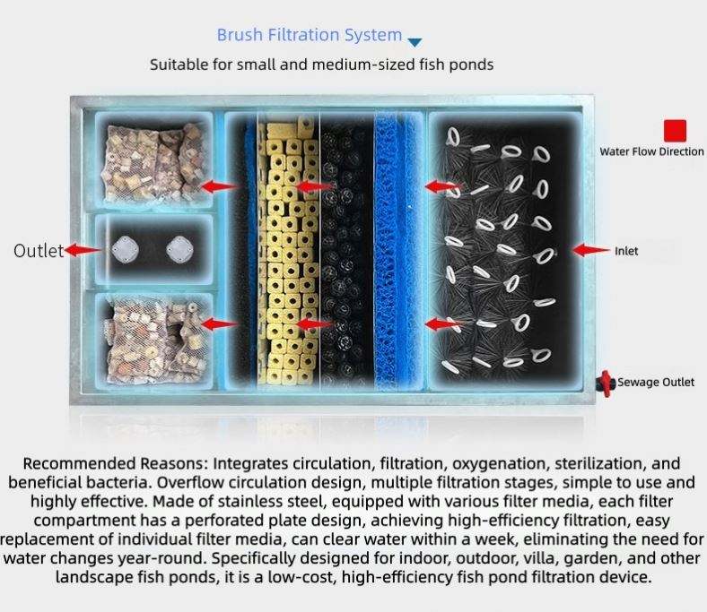 กล่องกรองบ่อปลา ห้องแบคทีเรีย แปรงกรอง ระบบกรองแบบรวมรังสีอัลตราไวโอเลต อุปกรณ์กรองน้ำแบบหมุนเวียน