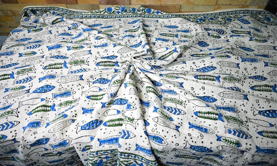 ผ้าห่มพิมพ์ลายปลา ทำมือ 100% ผ้าฝ้าย เป็นมิตรกับสิ่งแวดล้อม ทันสมัย ใช้ได้ทุกฤดู สำหรับโซฟาและห้องนั่งเล่น ตกแต่งบ้าน