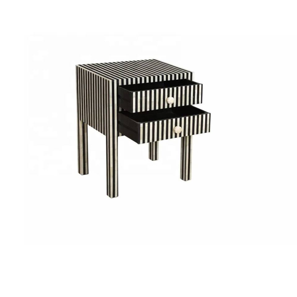 โต๊ะข้างเตียงแบบฝังกระดูกลายปลาโต๊ะข้างเตียงทำมือ2ลิ้นชักฝังกระดูกโต๊ะข้างเตียงไม้จริง