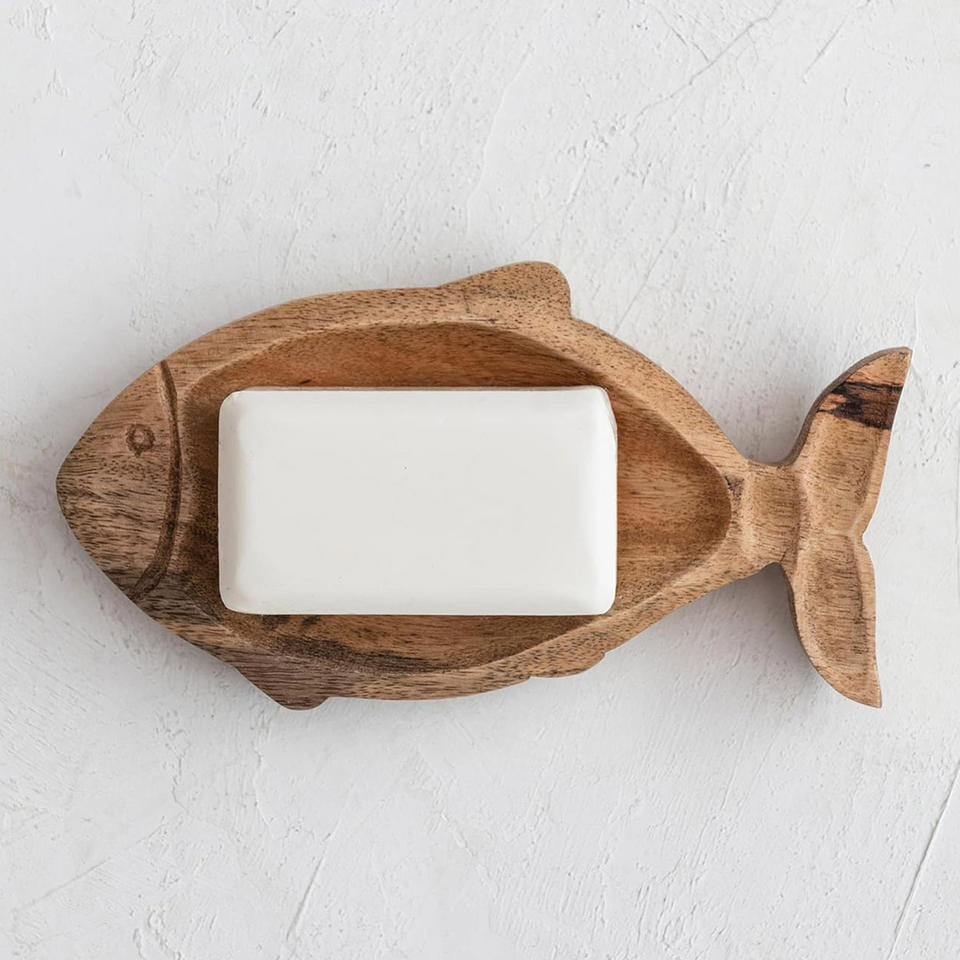 ปลารูปร่างไม้มะม่วงจานเสิร์ฟไม้จานเสิร์ฟสําหรับเด็กคนรักสัตว์ชามไม้สําหรับห้องน้ําราคาถูก