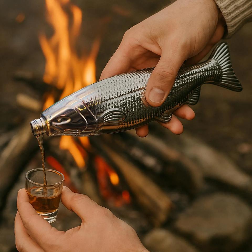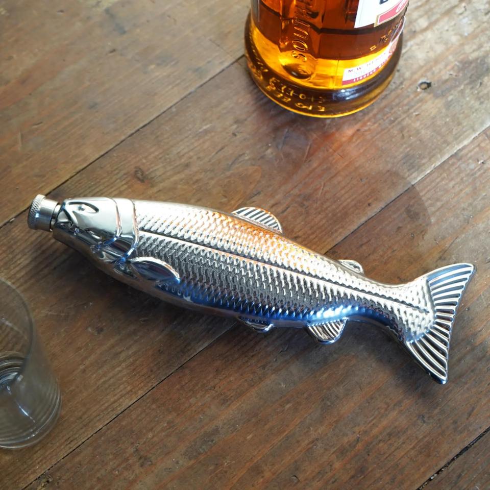 กระติกน้ำรูปปลาสีเงิน กระติกเหล้าวิสกี้โลหะทันสมัย เหมาะสำหรับเป็นของขวัญสำหรับคนรักการตกปลา และเป็นของตกแต่งสำหรับตั้งโชว์ในบาร์