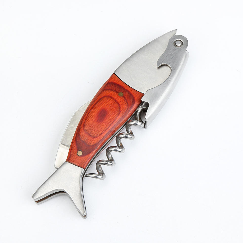 ที่เปิดขวดรูปปลา ทำจากสแตนเลส ใช้เปิดขวดไวน์และเบียร์ ดีไซน์สร้างสรรค์ ขนาด 12.7 ซม. ผลิตที่เมืองหยางเจียง