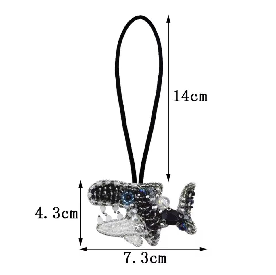 พวงกุญแจรูปปลาสีฟ้าขาว งานแฮนด์เมดสไตล์วินเทจ ประดับคริสตัลหลากสี ตัวอักษรภาษาอังกฤษแบบเรียงต่อกัน พร้อมสายคล้องข้อมือ