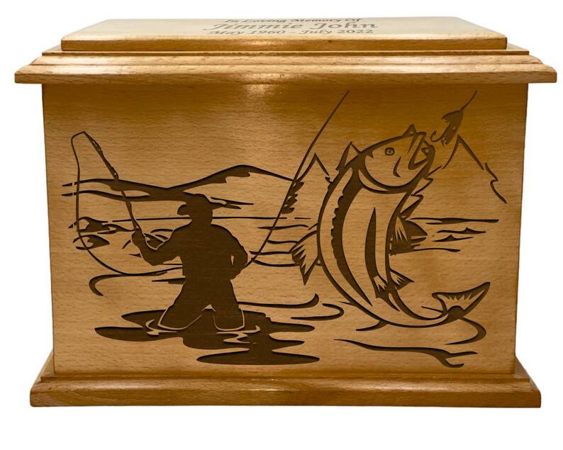โกศใส่ไม้สำหรับงานศพชาวประมงโกศใส่เถ้ามนุษย์สำหรับแกะสลักรูปสัตว์โกศ