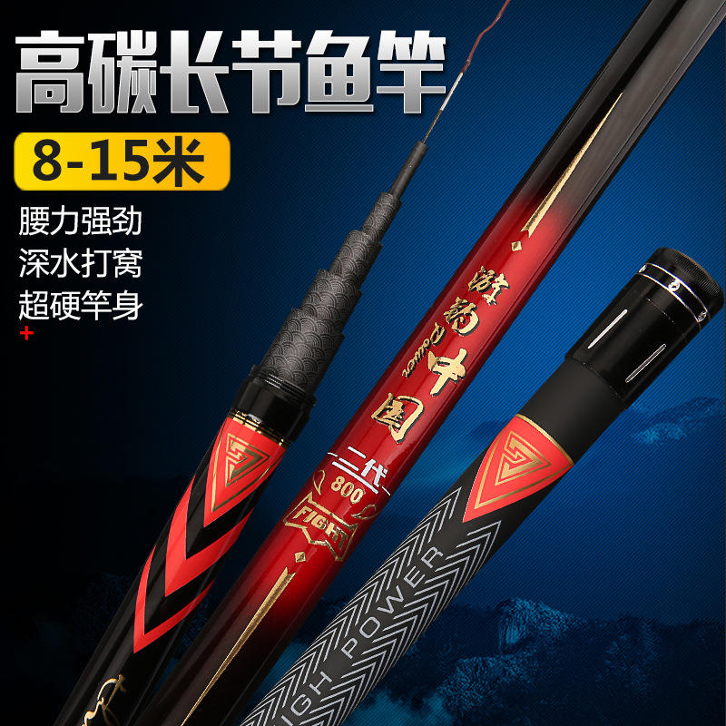 คันเบ็ดตกปลาแบบยืดหดได้ Fishing China II ขนาด 8-15 เมตร แอคชั่นเร็วพิเศษ ผลิตจากคาร์บอนไฟเบอร์คุณภาพสูง พร้อมไกด์ SIC สำหรับตกปลาคาร์พในน้ำลึก