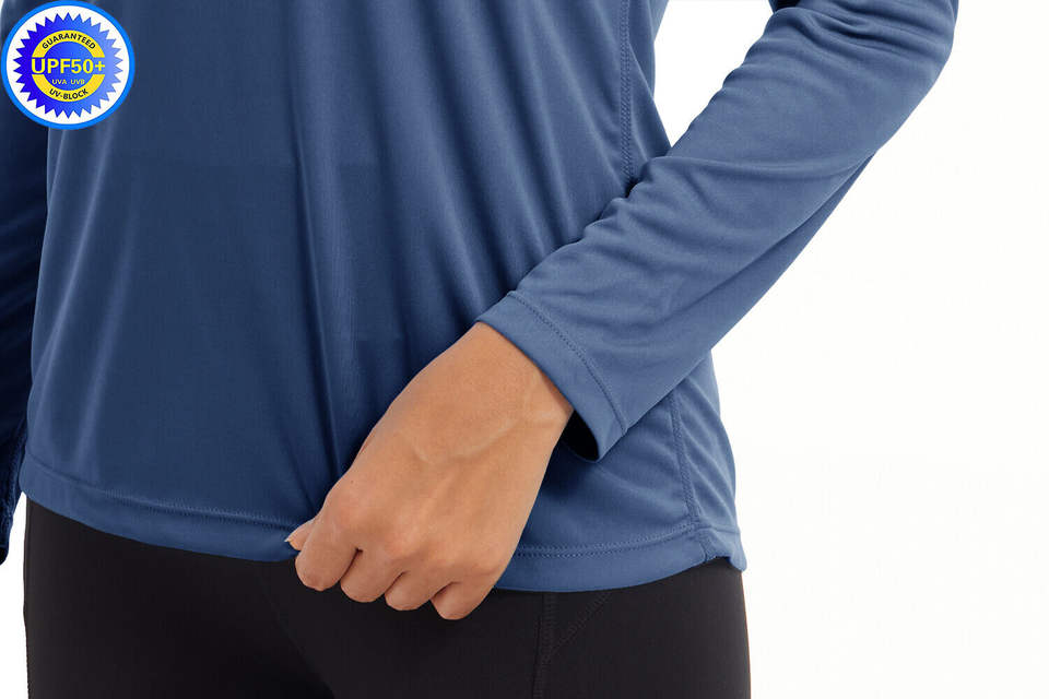 เสื้อปีนเขา UV สำหรับตกปลากลางแจ้งเสื้อเจอร์ซีย์ตกปลาสำหรับผู้หญิงเสื้อมีฮู้ด UPF 50 + กันแดดแขนยาว