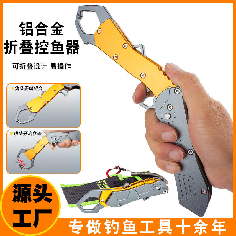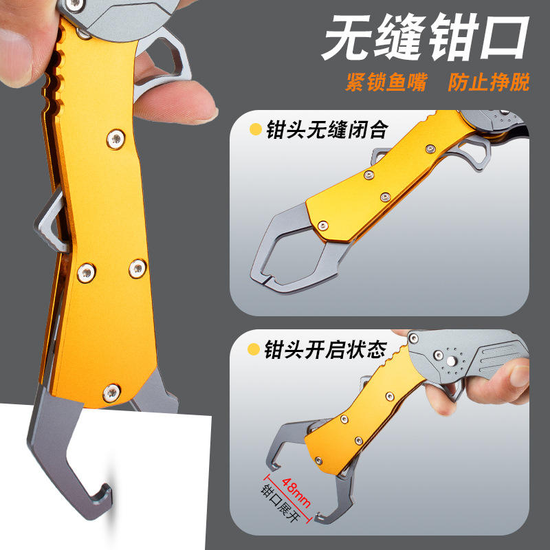 คีมจับปลาแบบพับได้ อลูมิเนียมอัลลอย สีเทาและสีแดง สำหรับใช้กับอุปกรณ์ตกปลา