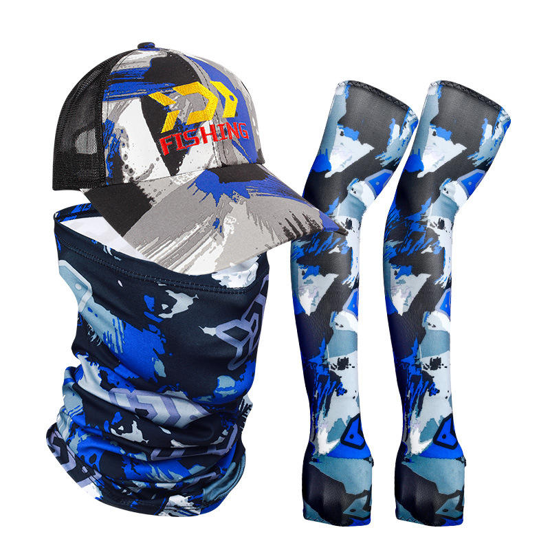 ชุดป้องกันแสงแดดสำหรับตกปลา ผ้าไหมน้ำแข็ง UPF 50 สำหรับทุกเพศ ป้องกันรังสียูวี ชุดสามชิ้น สำหรับตกปลากลางแจ้ง ใส่ได้ในฤดูร้อน