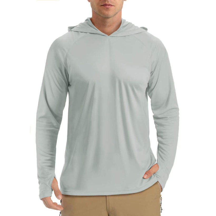 เสื้อมีฮู้ดกันแดดสำหรับผู้ชายเสื้อตกปลาแขนยาวผ้าไอซ์ซิลค์สำหรับใส่ตกปลาในฤดูร้อน