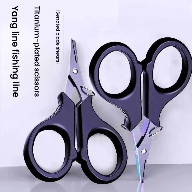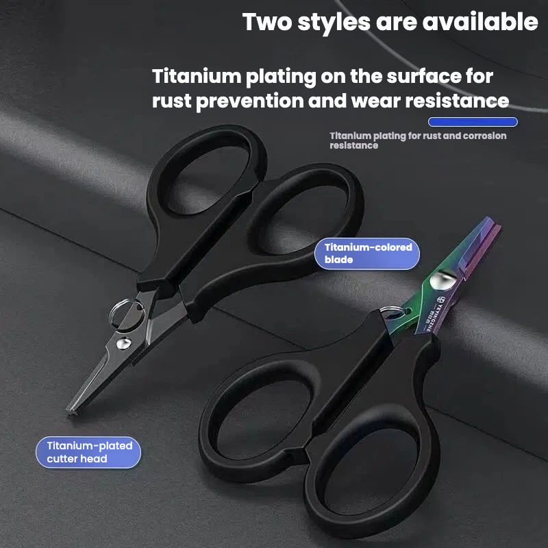 กรรไกรตัดสายเบ็ด สแตนเลส ชุบไทเทเนียม พกพาสะดวก อุปกรณ์ตกปลา สาย PE กรรไกรตัดสายสแตนเลส