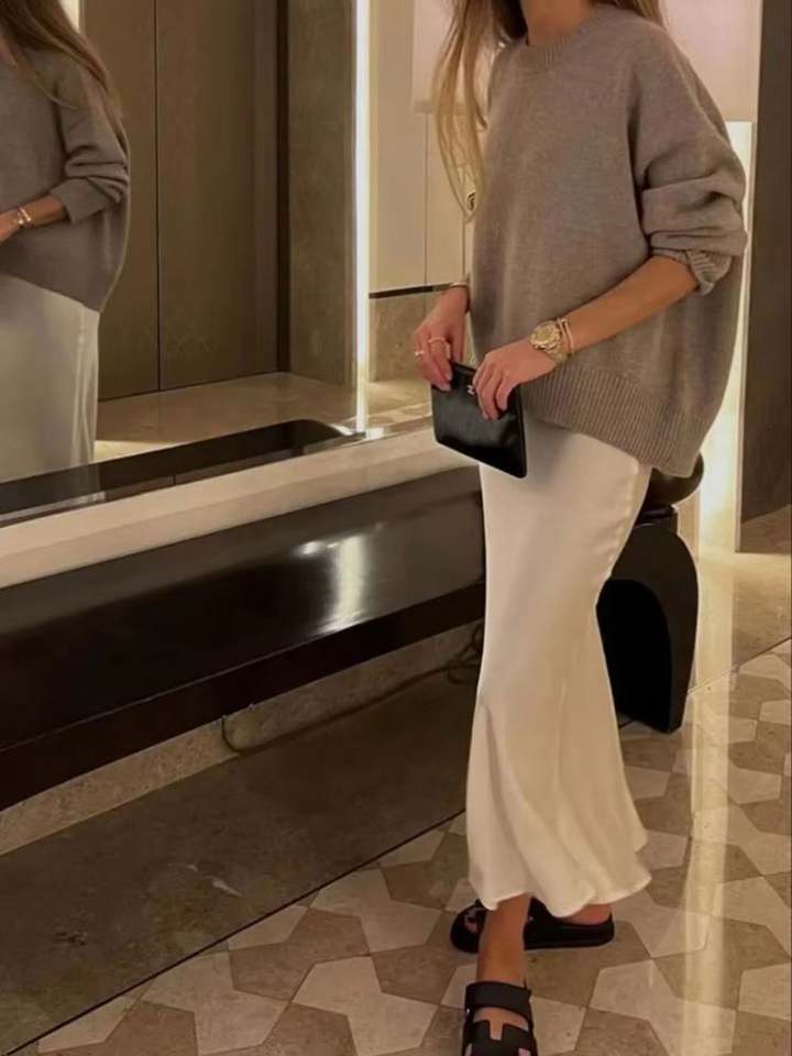 กระโปรงทรงเอไลน์แบบหางปลา เอวธรรมชาติ เซ็กซี่ เหมาะสำหรับใส่ไปเที่ยวคลับ ผลิตจากผ้าไหมเทียมซาติน รักษ์โลก สีพื้น เงางาม