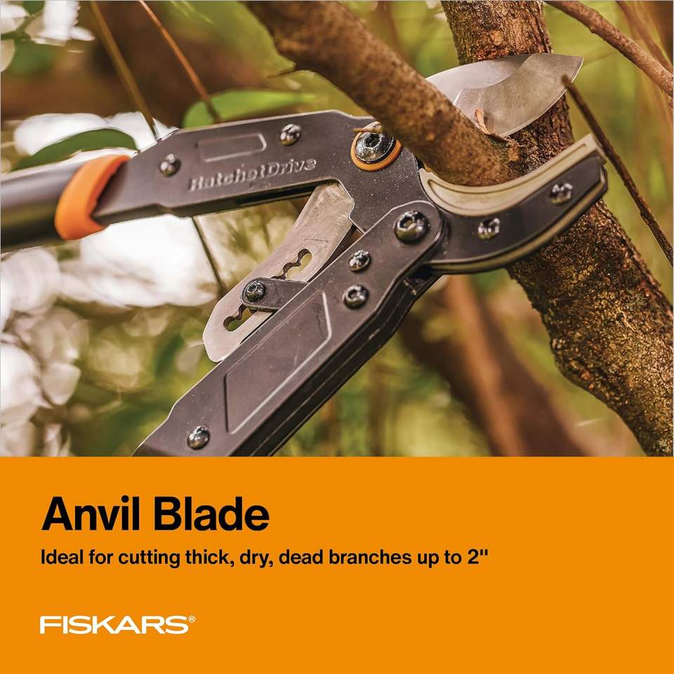 กรรไกรตัดกิ่งไม้ Fiskars รุ่น Ratchet Drive Anvil Lopper ขนาด 32 นิ้ว สำหรับงานหนัก ตัดได้สูงสุด 2 นิ้ว ด้ามจับแบบยึดติด ใช้งานง่าย บีบง่าย รับประกันตลอดอายุการใช้งาน