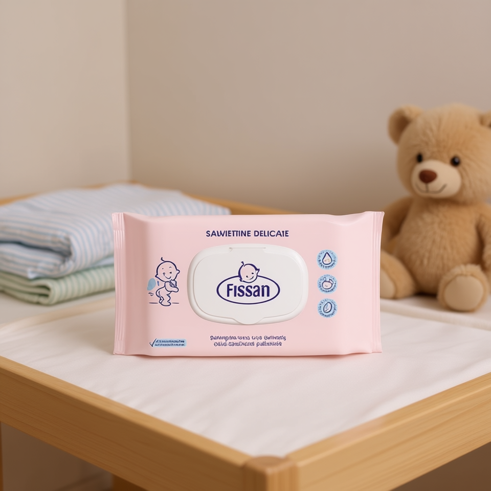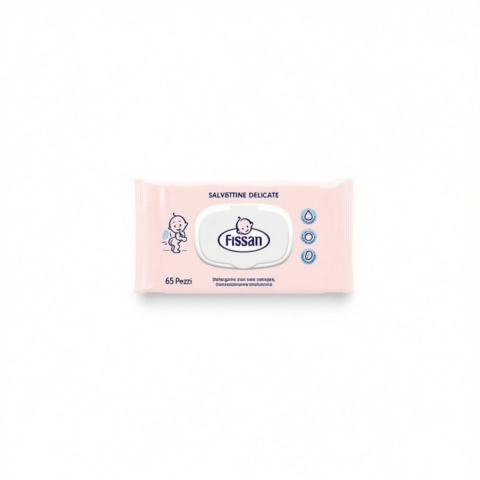 ผ้าเช็ดทำความสะอาดเด็กแบบใช้แล้วทิ้ง ฟิสซาน เดนิทิเคท ผลิตจากผ้าไม่ถักทอ ซึมซับดี 65 ชิ้น อ่อนโยนต่อผิวเด็ก