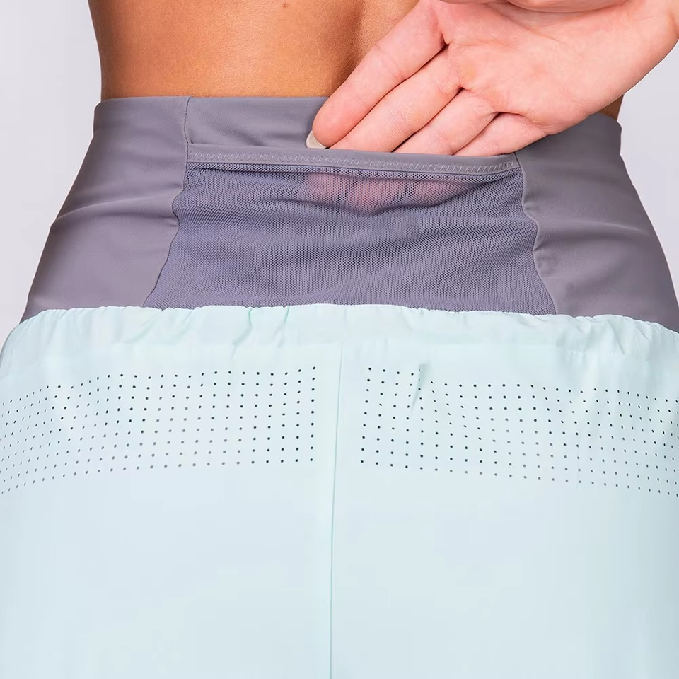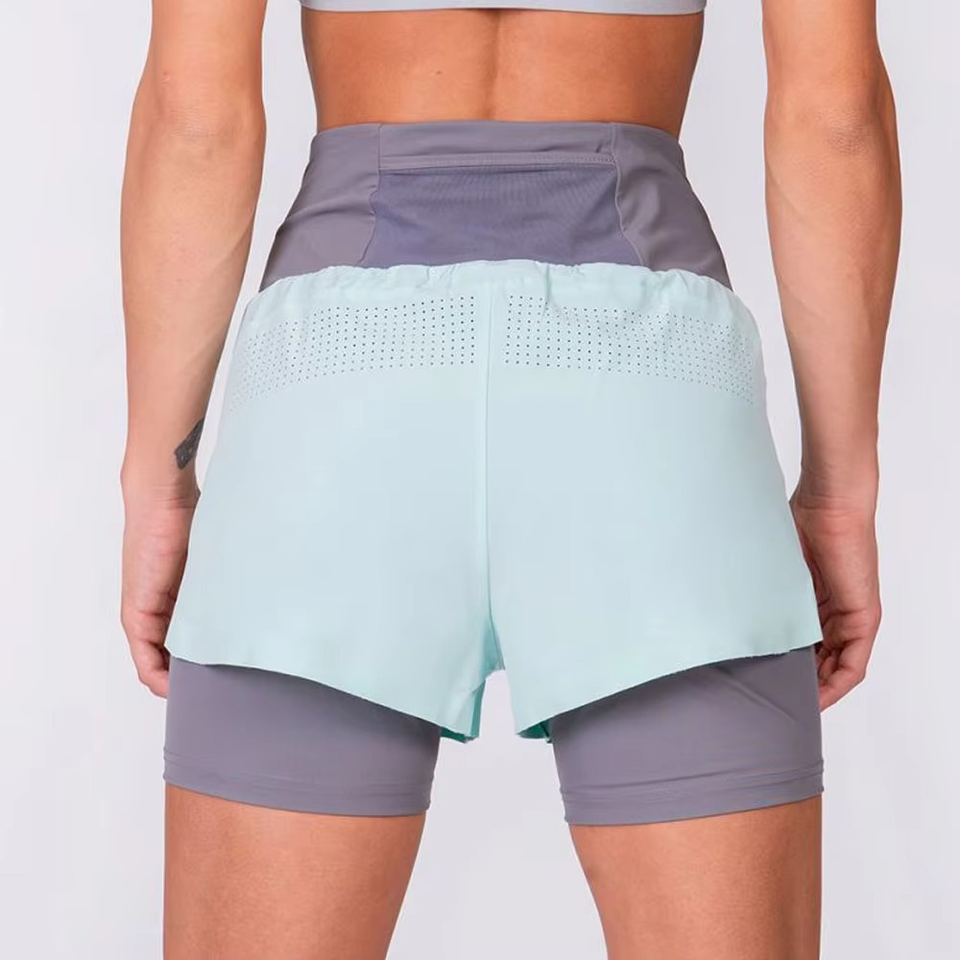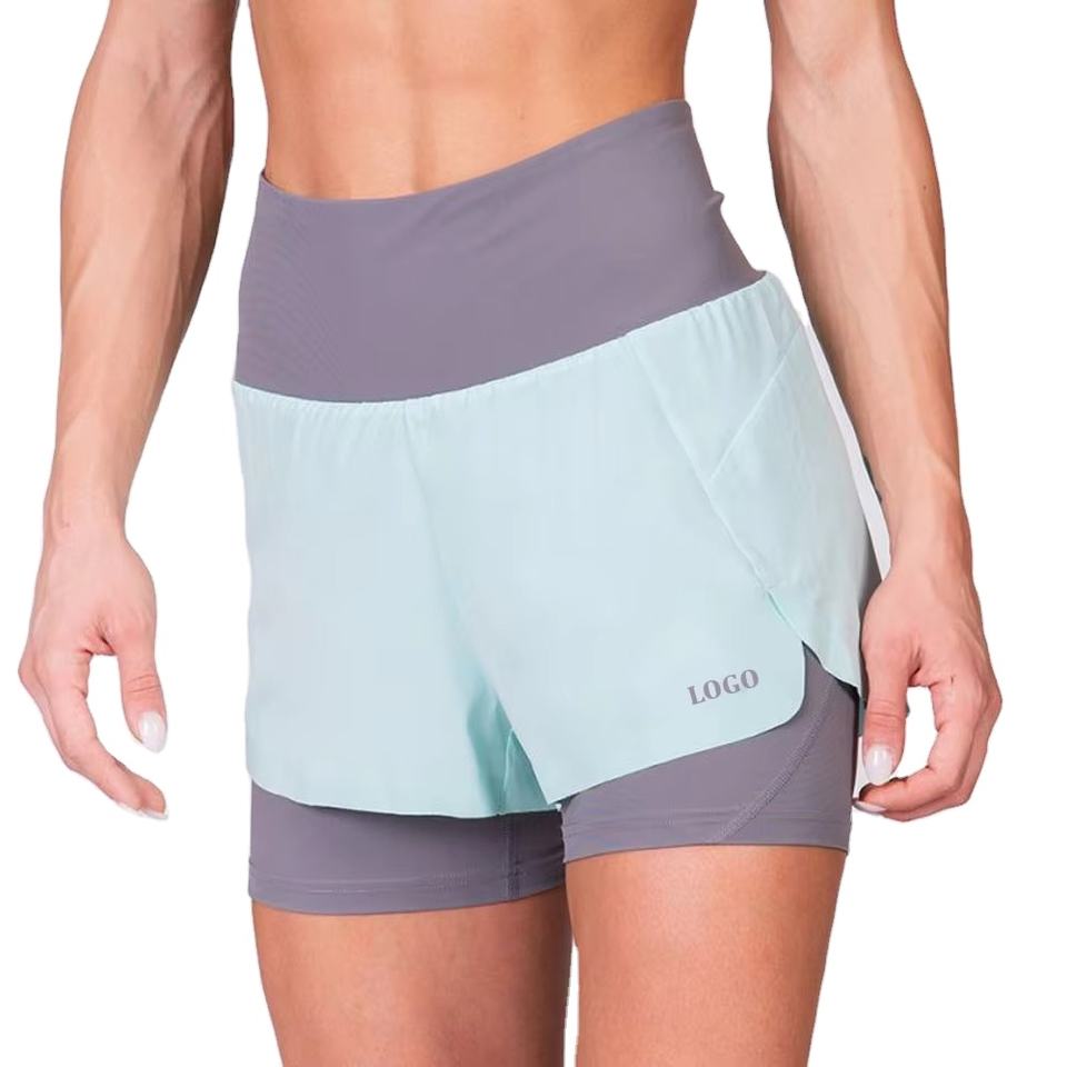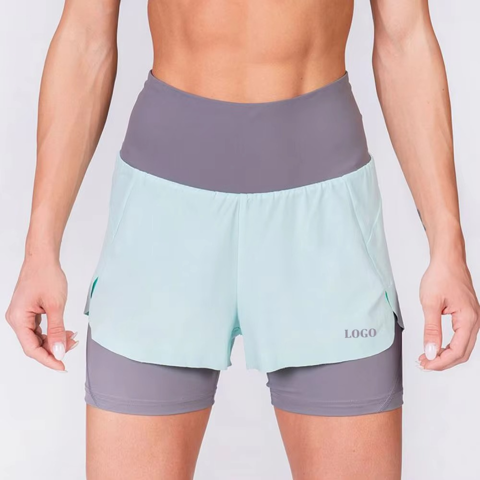 กางเกงวิ่งออกกำลังกายแบบมีกระเป๋า 2in1 สีสันตัดกัน สำหรับผู้หญิง ออกแบบเองได้ เหมาะสำหรับออกกำลังกาย ฟิตเนส เล่นกีฬา ไร้ตะเข็บ