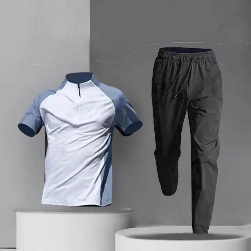 แจ็กเก็ต + กางเกงวิ่งลำลองสำหรับผู้ชายชุดออกกำลังกายฟิตเนสชุด2ชิ้นชุดฝึกซ้อมบาสเก็ตบอลสำหรับฤดูร้อน