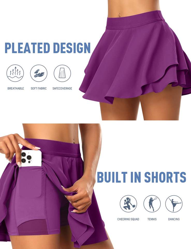 กระโปรงฟิตเนส MOQ ต่ำ ชุดโยคะสองชิ้นไร้รอยต่อ กางเกงขาสั้นเอวสูงสำหรับผู้หญิง กระโปรงเทนนิสสำหรับวิ่งและเล่นกีฬาสำหรับเด็กผู้หญิง