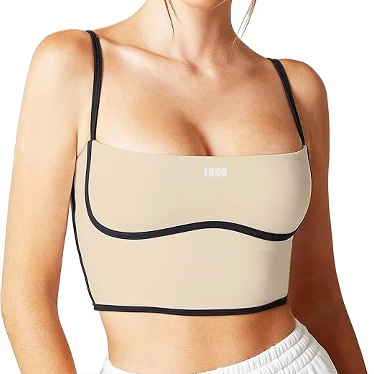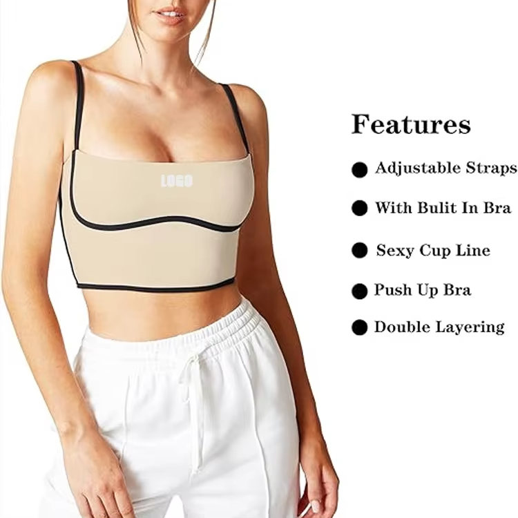 เสื้อครอปออกกำลังกายแบบสปอร์ต สายปรับได้ ฟองน้ำถอดออกได้ รองรับแรงกระแทกปานกลาง คอรูปตัวยู