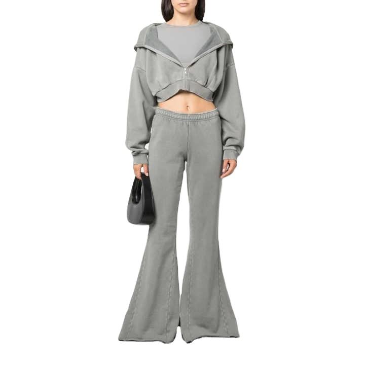 ชุดออกกำลังกาย ชุดโยคะ ผ้าฝ้าย 100% สำหรับผู้หญิง กางเกงวอร์มทรงบานฟอกสี กางเกงวอร์มและเสื้อฮู้ด ชุดเซ็ต 2026