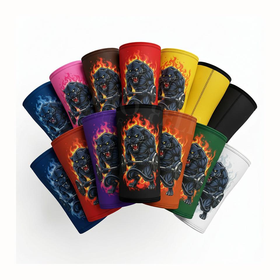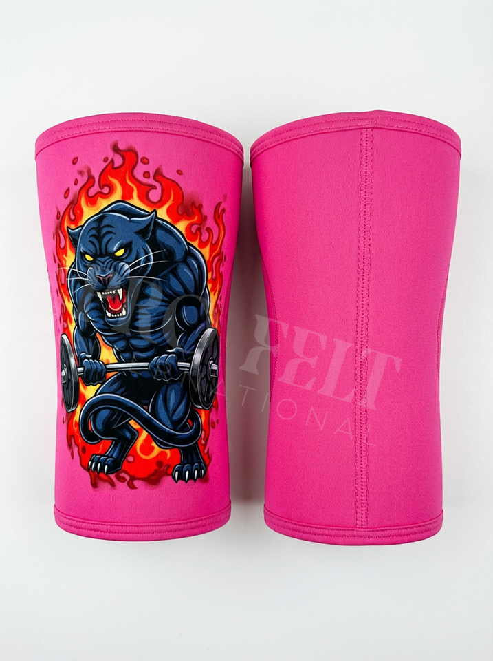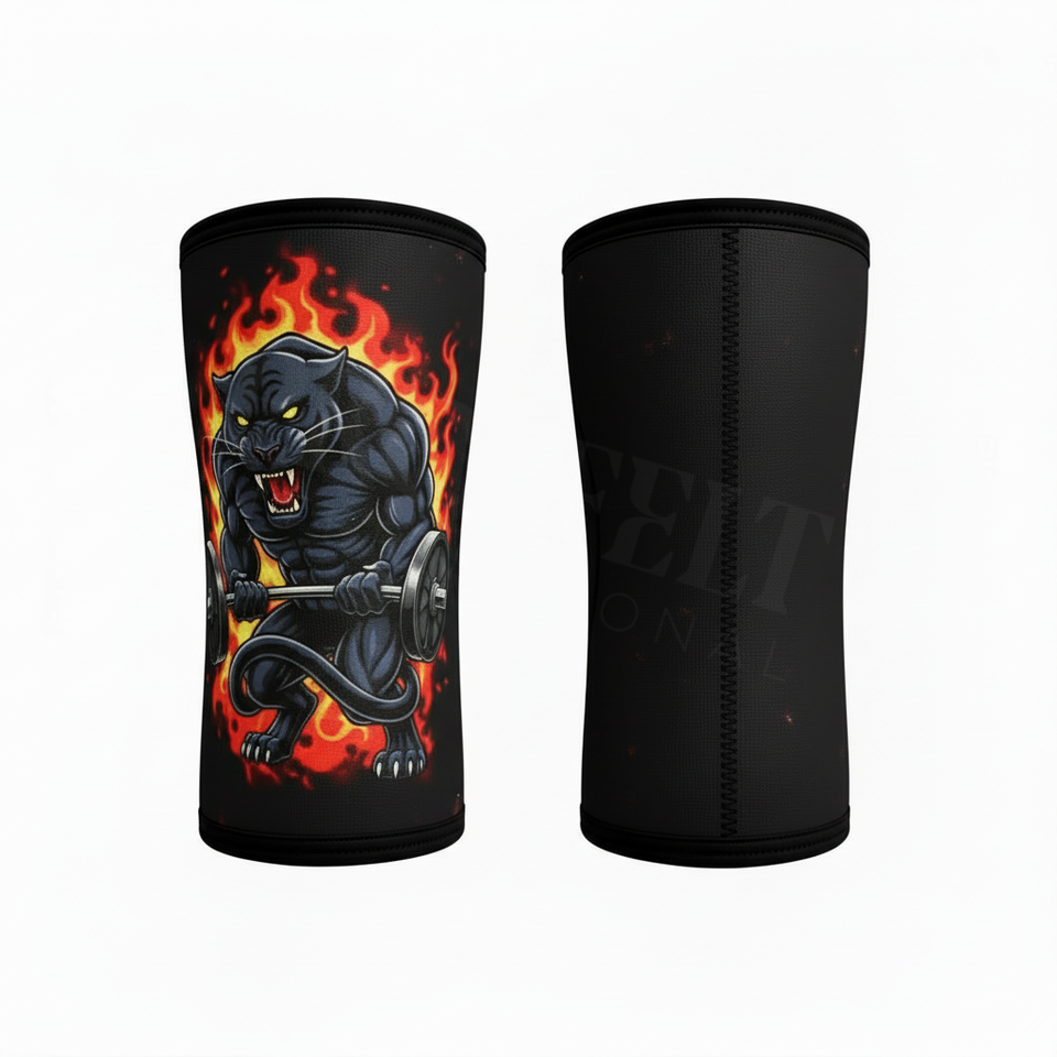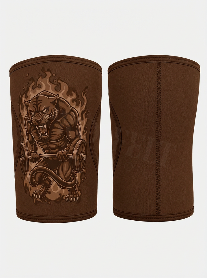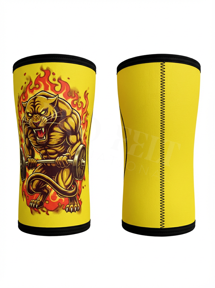 สนับเข่าแบบนีโอพรีนสำหรับยกน้ำหนัก ลายเสือดำ ออกแบบเองได้ ใช้ได้ทั้งชายและหญิง ทนทาน รองรับแรงกด หนา 7 มม.