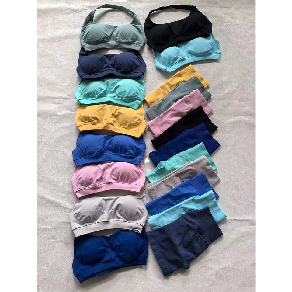 ชุดฟิตเนส3ชิ้นสำหรับผู้หญิงชุดออกกำลังกายแบบคล้องคอบรากางเกงเลคกิ้งสำหรับใส่ไปยิมกางเกงขาสั้นกางเกงขี่จักรยาน