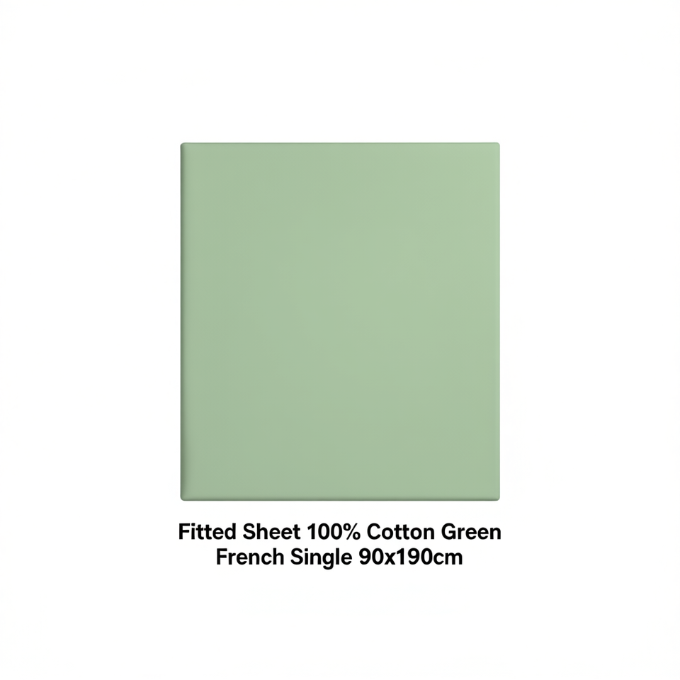ผ้าปูที่นอนรัดมุม 100% คอตตอน สีเขียว ขนาดเฟรนช์ซิงเกิล 90x190 ซม.