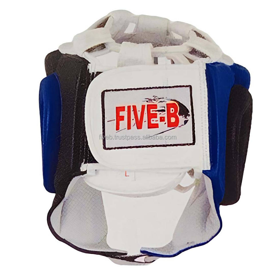 อุปกรณ์ป้องกันศีรษะสำหรับชกมวย ทำจากหนังวัวแท้ ยี่ห้อ Five-B บุด้วย EVA และ PU Latex พร้อมสายรัดแบบผูกปรับได้ เพื่อการปกป้องที่ดี