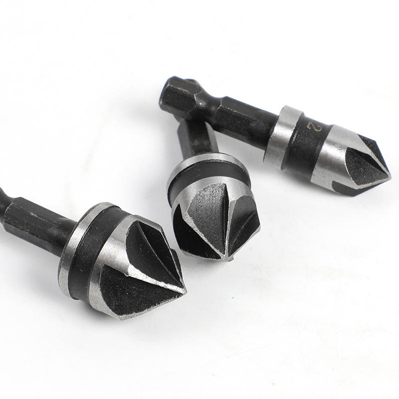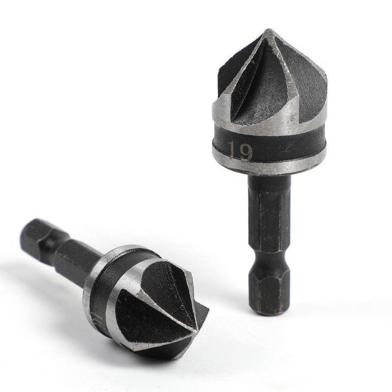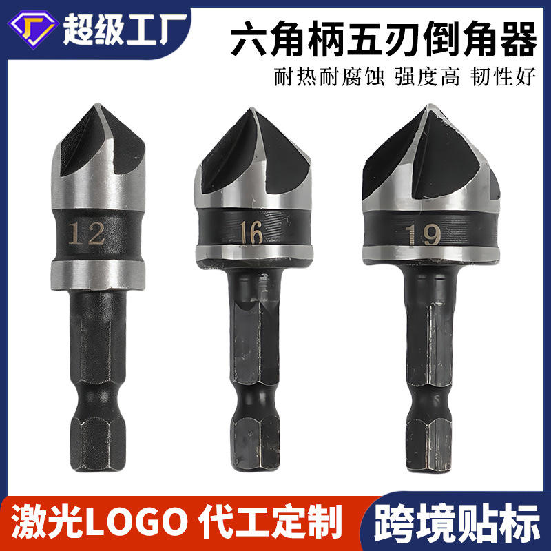 ชุดเครื่องมือลบคมห้าใบมีด 12 16 19 มม. เหล็กความเร็วสูงสำหรับงานไม้ เจาะรู เลื่อยวงเดือน