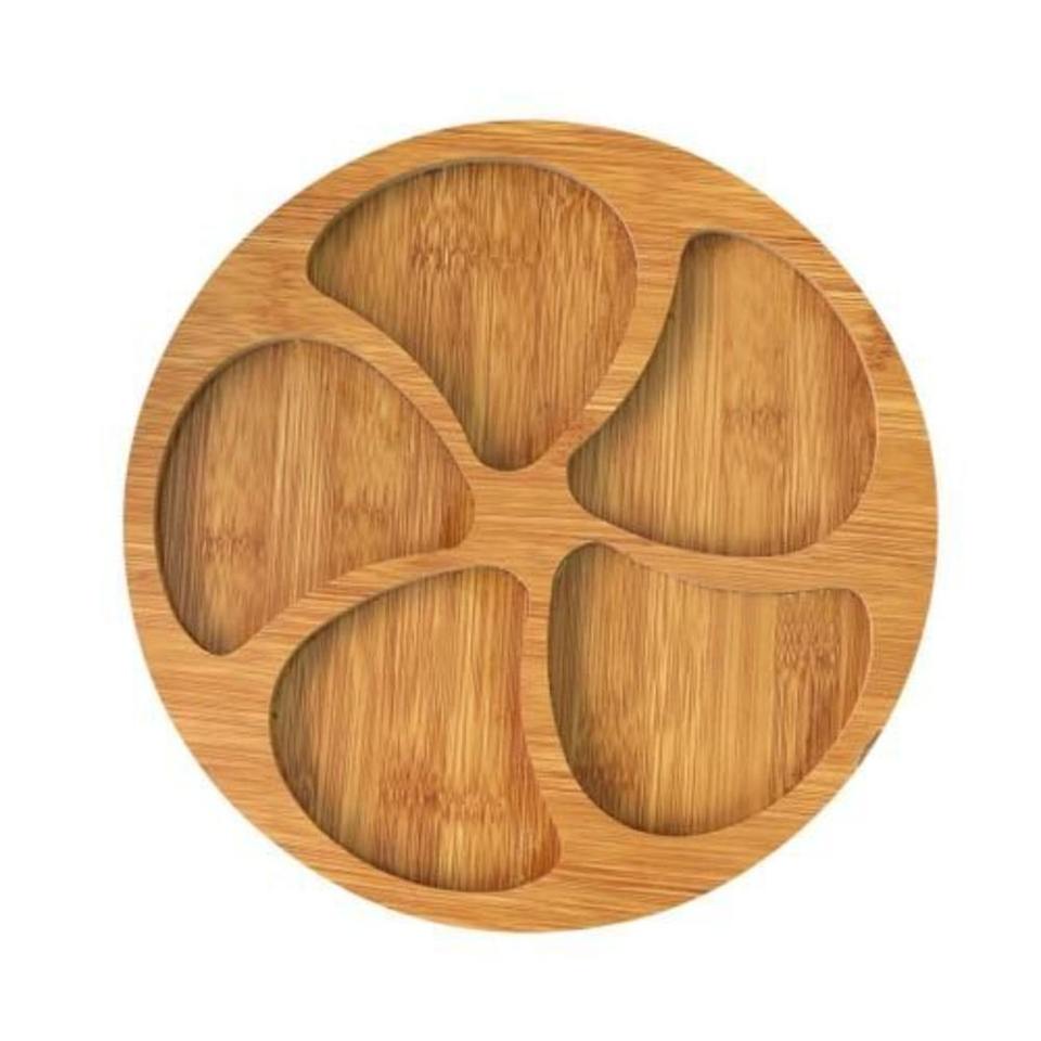 ถาดไม้มะม่วงห้าช่องในรูปแบบหกเหลี่ยมสำหรับขนมผลไม้แห้งและการนำเสนออาหารเรียกน้ำย่อย