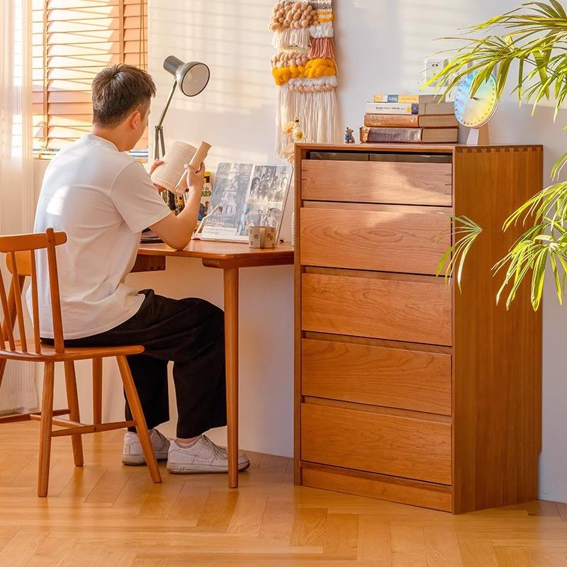ตู้ลิ้นชักห้าชั้น ไม้เชอร์รี่ ตู้เก็บของไม้เนื้อแข็ง ใช้ในห้องนอน แบบตั้งพื้น รูปทรงสี่เหลี่ยมผืนผ้า ทนทาน ใช้งานได้หลากหลาย