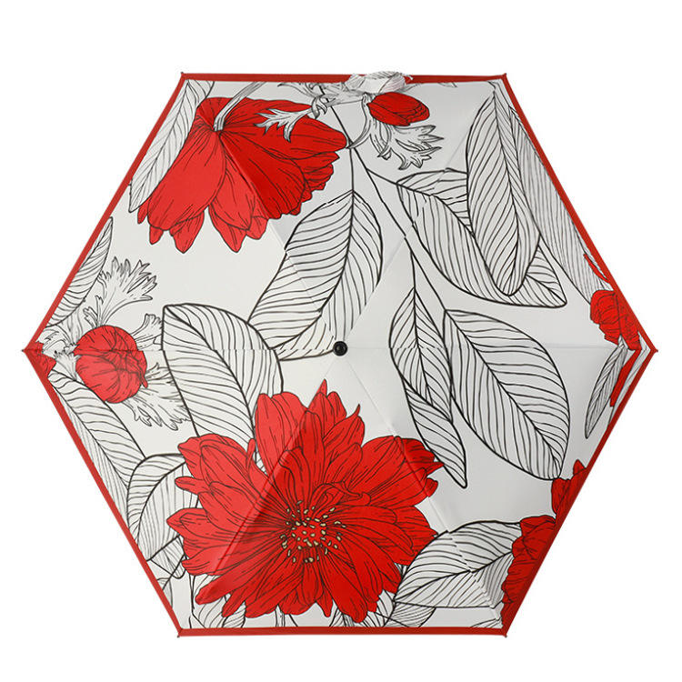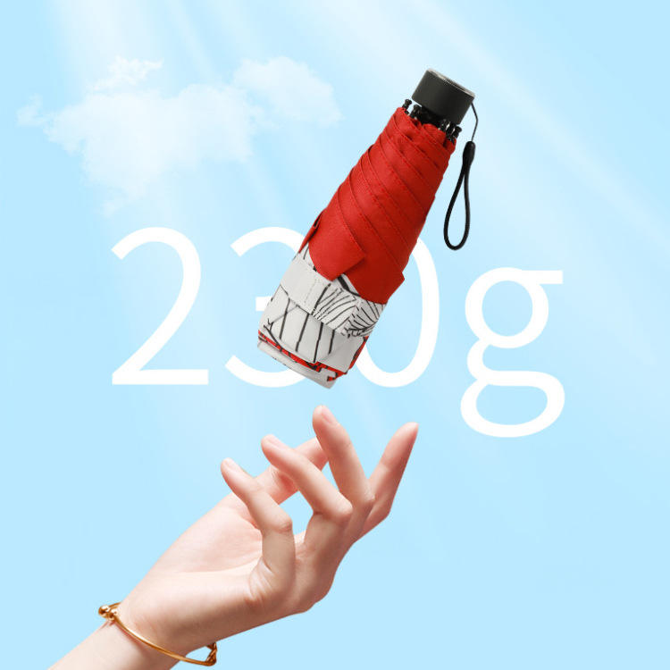 ร่มพับพกพาแบบพกพาห้าตอน รุ่นหรูหรา น้ำหนักเบาพิเศษ 8K ป้องกันลมแรง พร้อมแสงยูวีสำหรับการเดินทาง