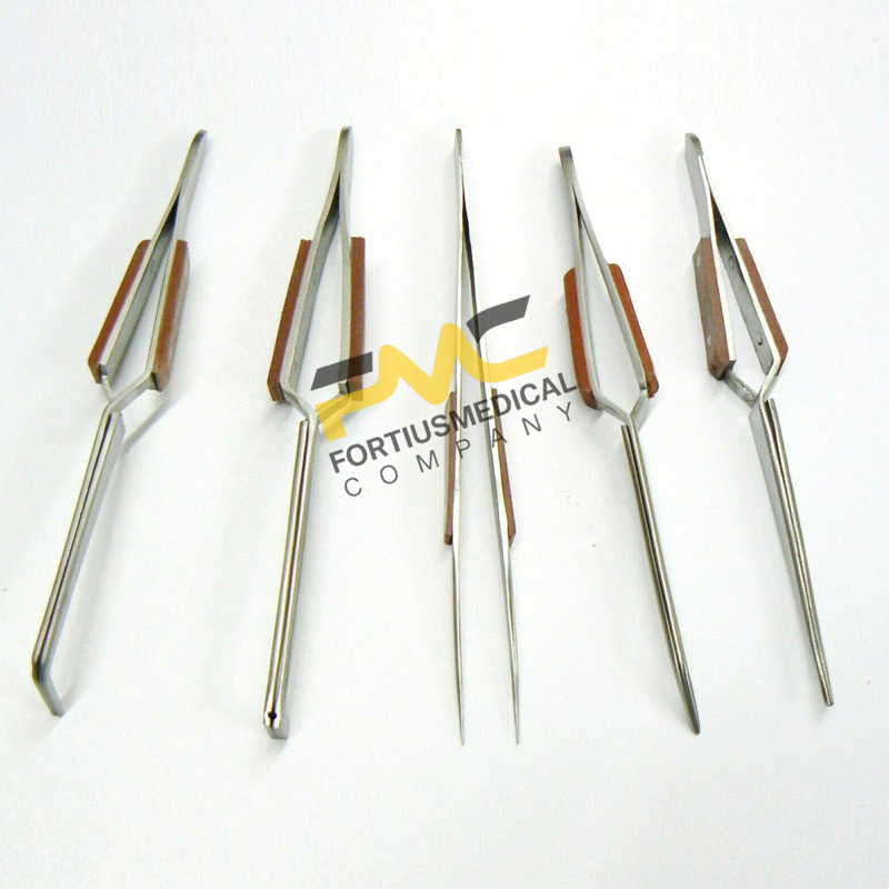 ชุดแหนบสแตนเลสทางการแพทย์แบบล็อคได้ 5 ชิ้น พร้อมปลายงอและปลายตรง สำหรับงานเครื่องประดับ งานฝีมือ และงานบัดกรี