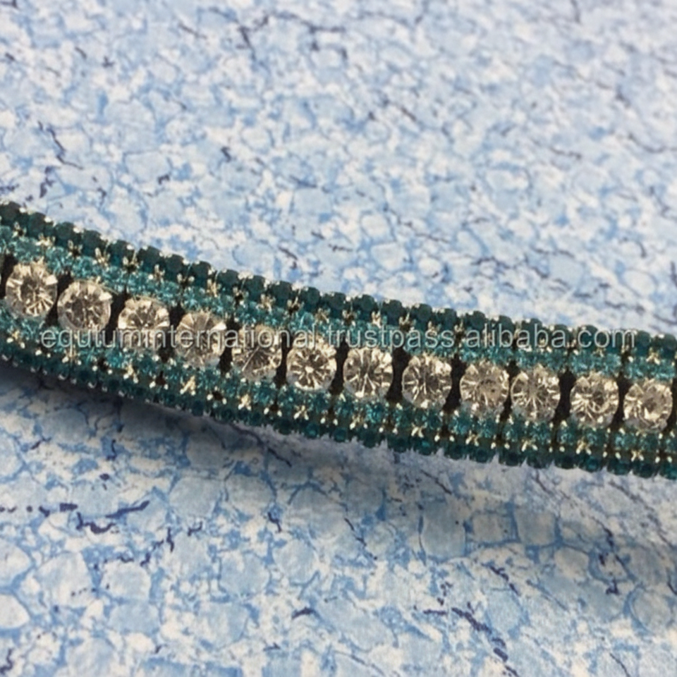 สายคาดหน้าผากม้าหนังแท้ห้าแถว สีน้ำเงินเข้ม สีฟ้าอ่อน สีเงิน สำหรับม้า หรูหราและสะดวกสบาย