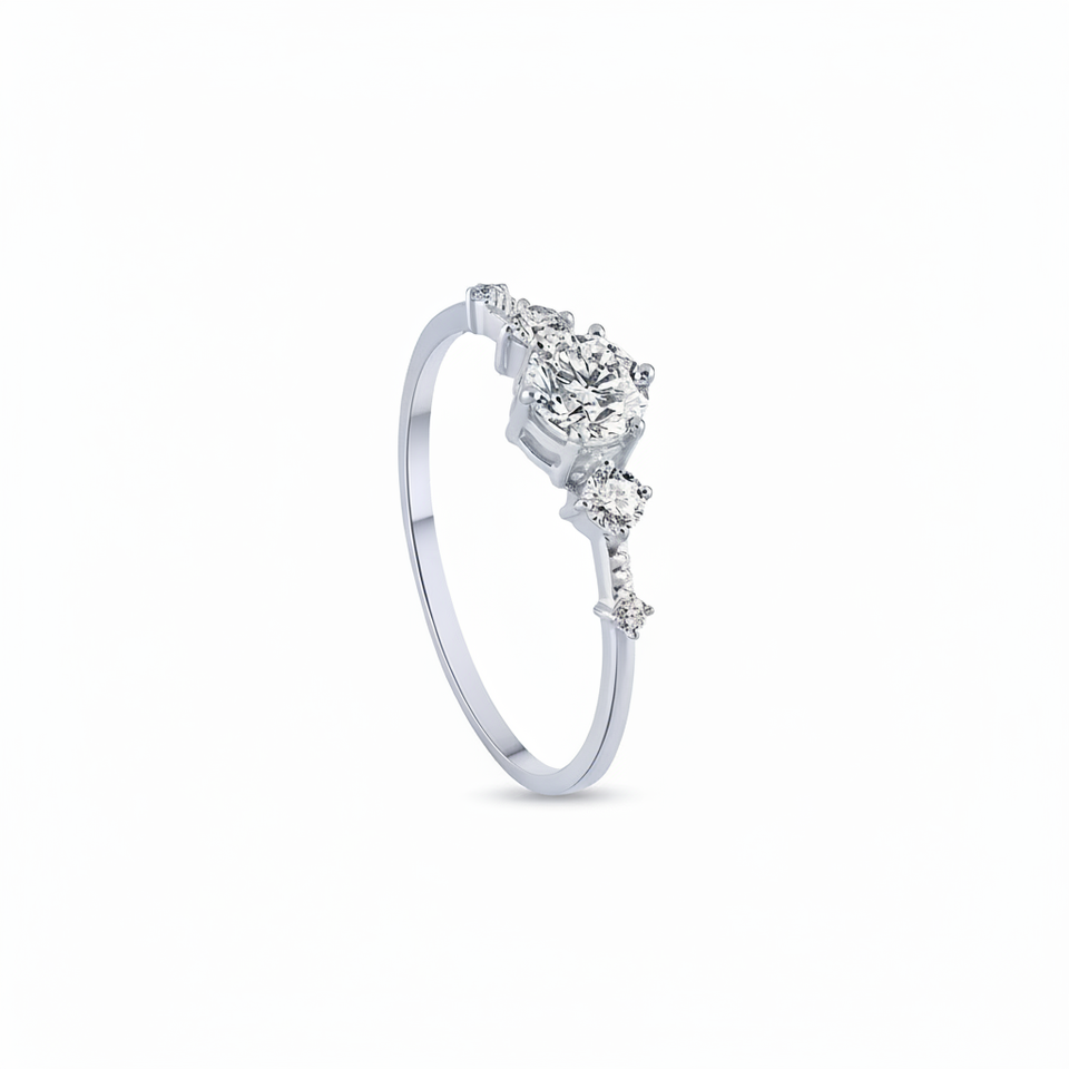 "Round Solitaire with Graduated Round Side Stones"รูปร่างเพชร